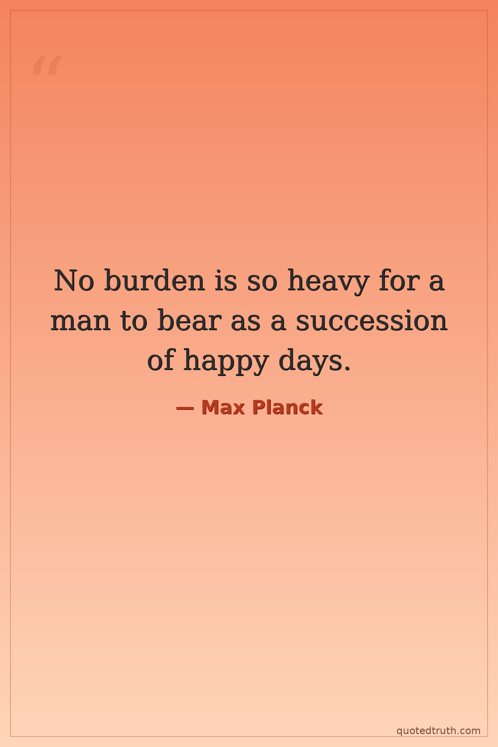 No burden is so heavy for a man to bear as a succession of happy days.