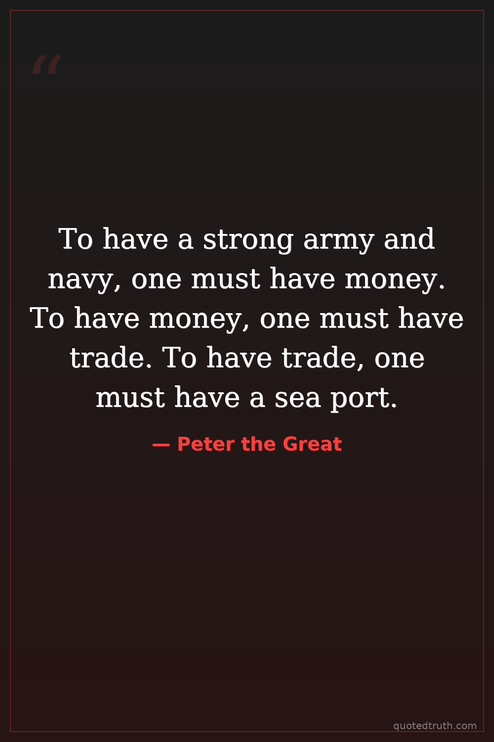 To have a strong army and navy, one must have money. To have money, one must have trade. To have trade, one must have a sea port.