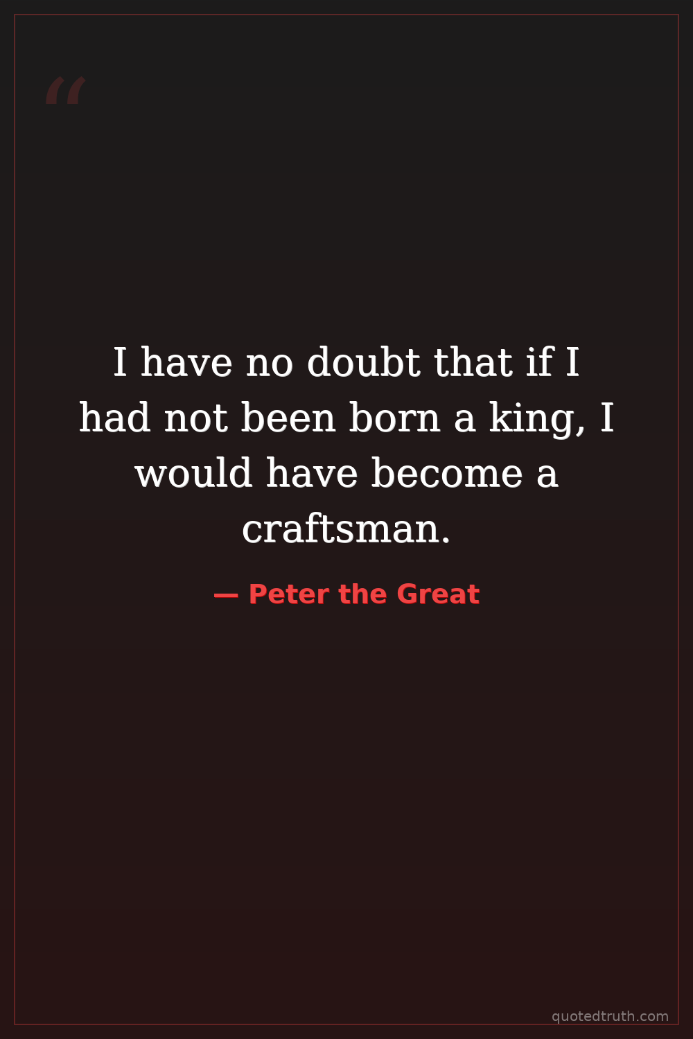 I have no doubt that if I had not been born a king, I would have become a craftsman.