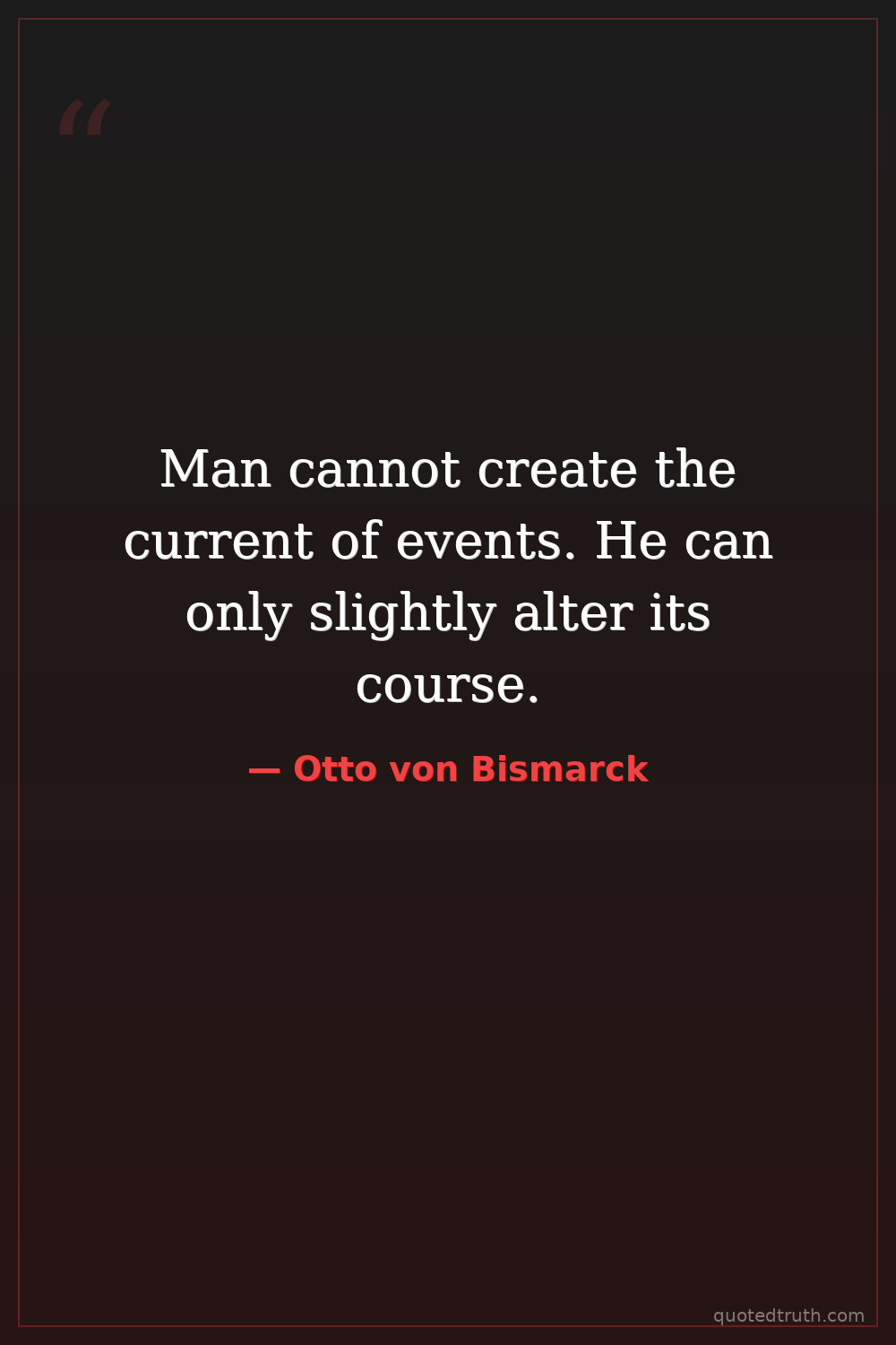 Man cannot create the current of events. He can only slightly alter its course.