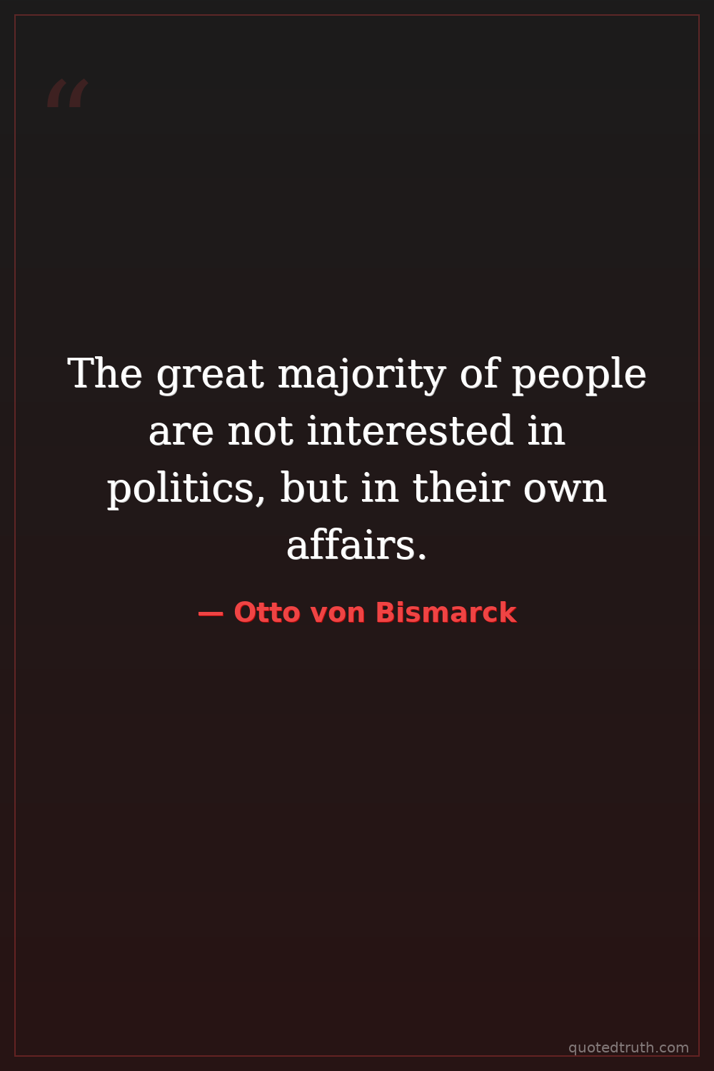 The great majority of people are not interested in politics, but in their own affairs.