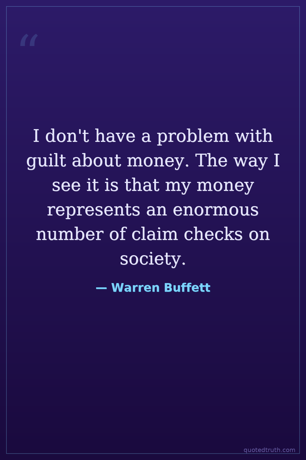 I don't have a problem with guilt about money. The way I see it is that my money represents an enormous number of claim checks on society.