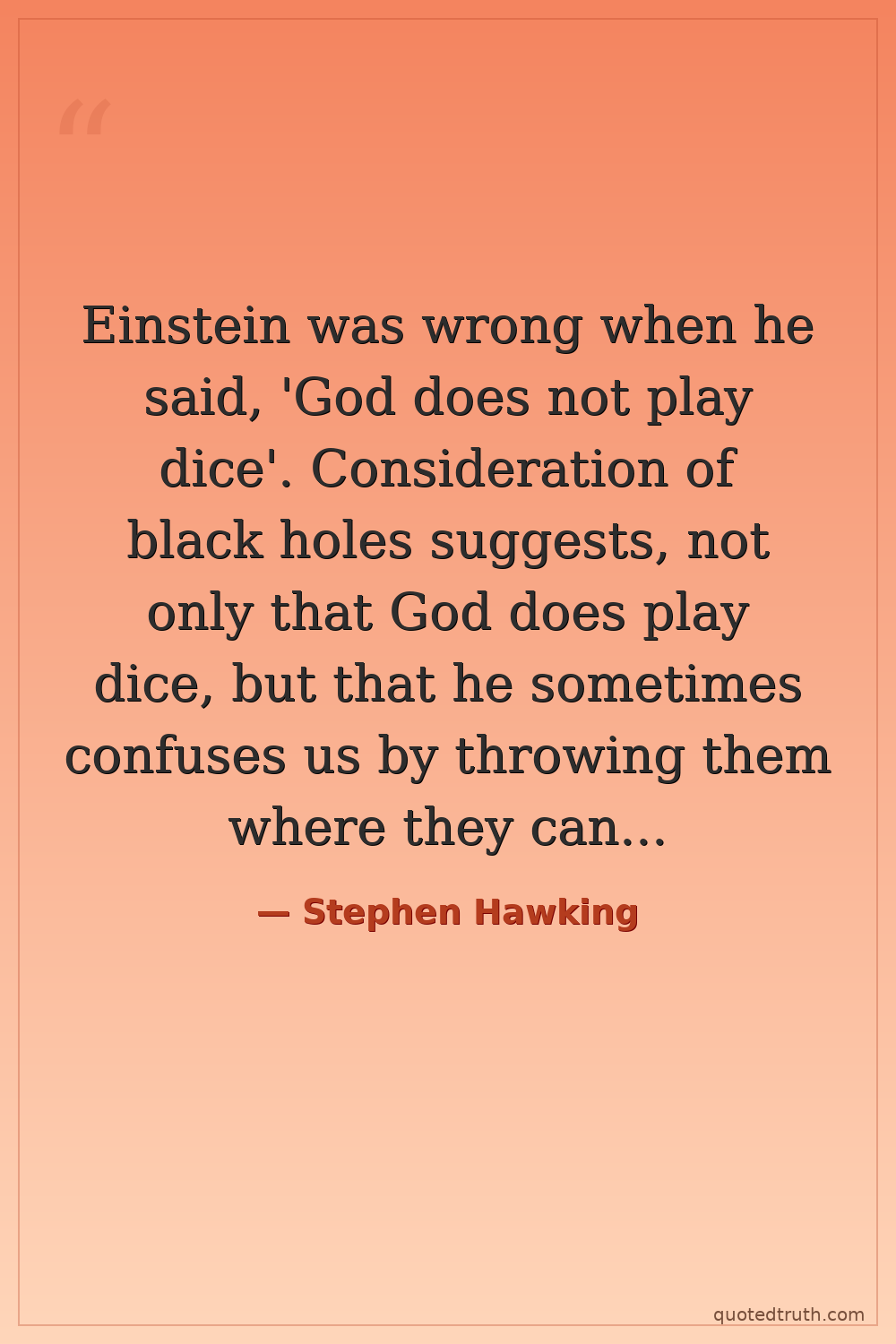 Einstein was wrong when he said, 'God does not play dice'. Consideration of black holes suggests, not only that God does play dice, but that he sometimes confuses us by throwing them where they can't be seen.