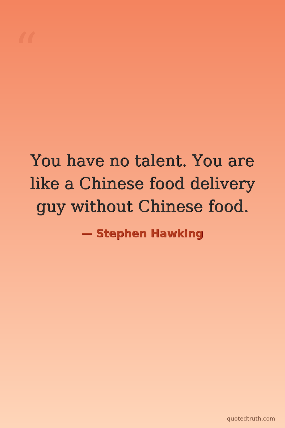 You have no talent. You are like a Chinese food delivery guy without Chinese food.