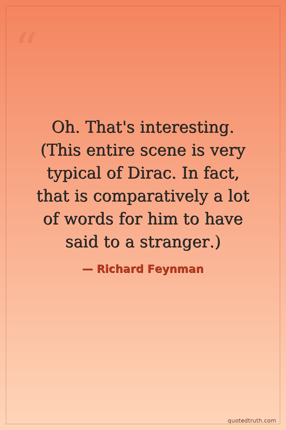 Oh. That's interesting. (This entire scene is very typical of Dirac. In fact, that is comparatively a lot of words for him to have said to a stranger.)