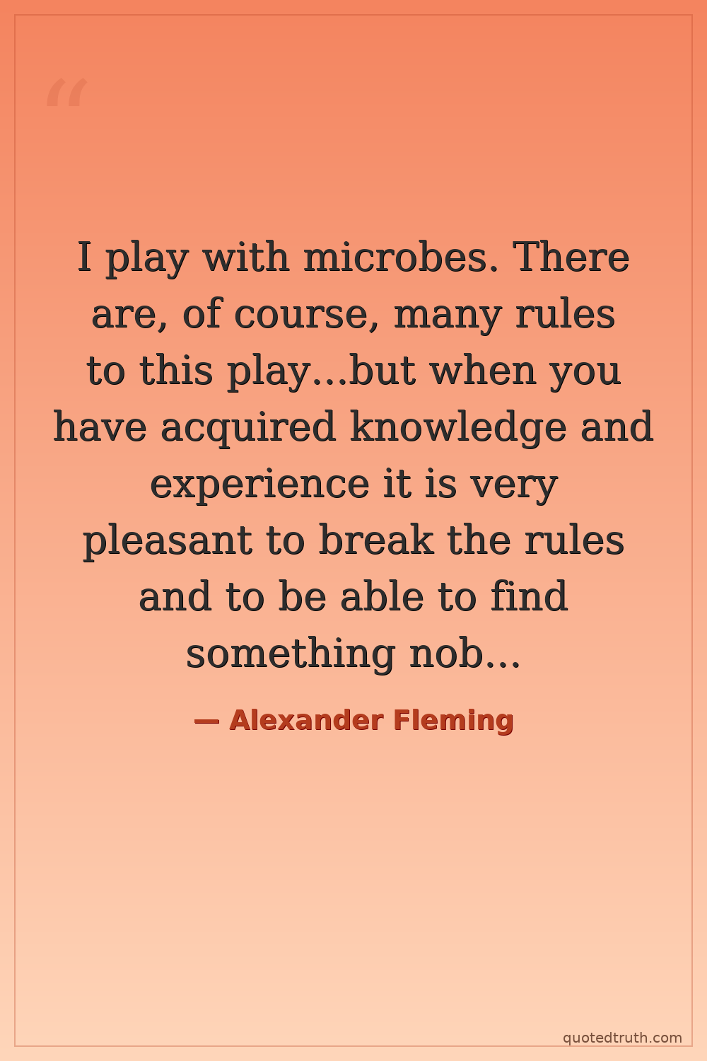 Shocking"I have been asked by many people how I came to discover penicillin. The answer is that I did not discover it. I just happened to notice it."
