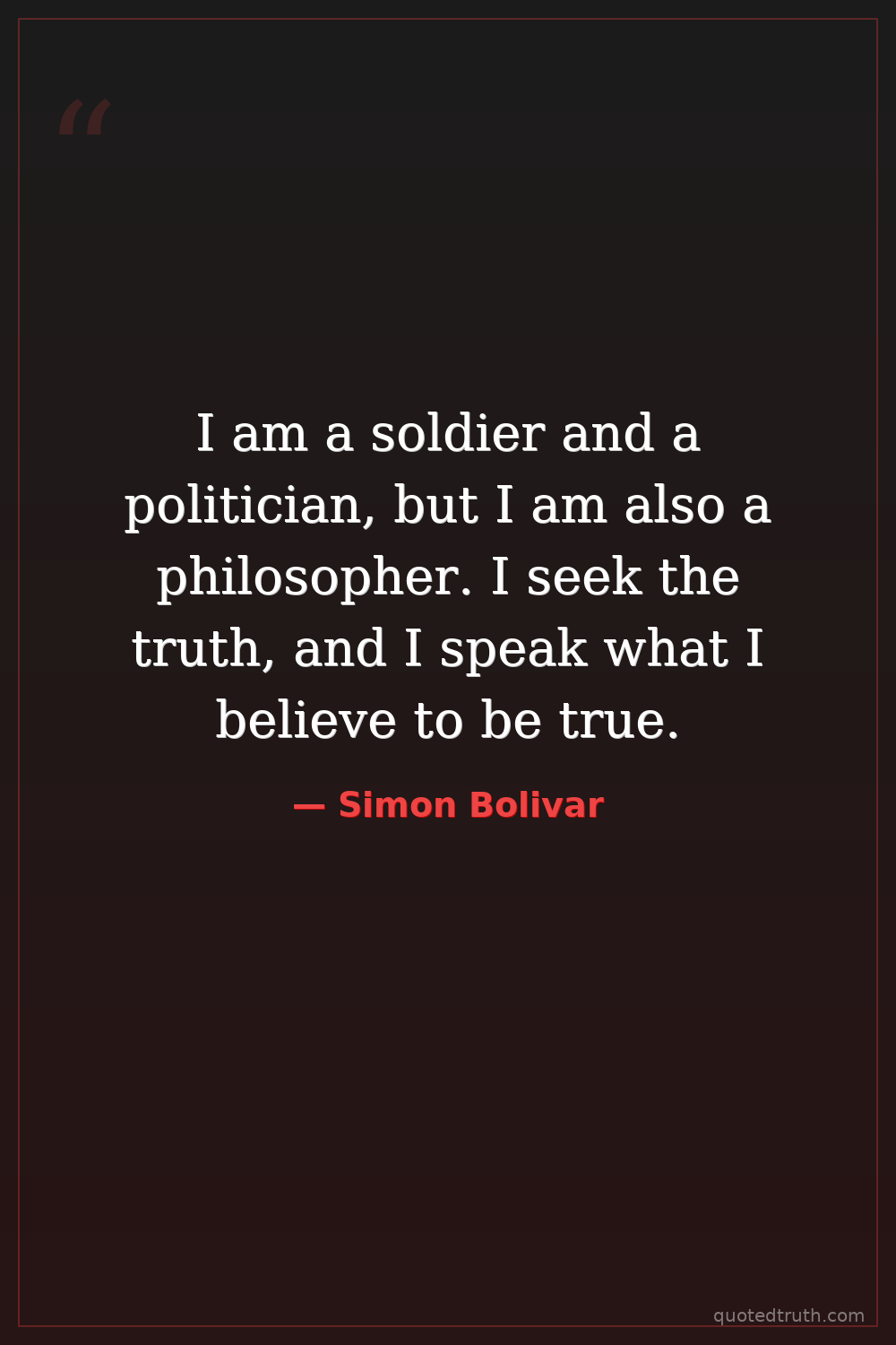 I am a soldier and a politician, but I am also a philosopher. I seek the truth, and I speak what I believe to be true.