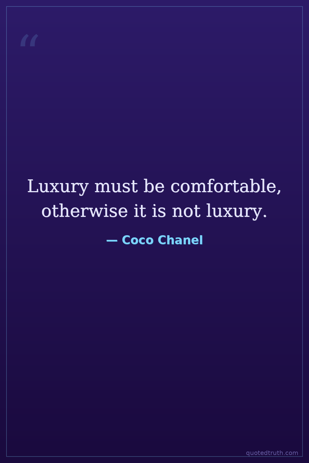 Controversial"Some people think luxury is the opposite of poverty. It is not. It is the opposite of vulgarity."