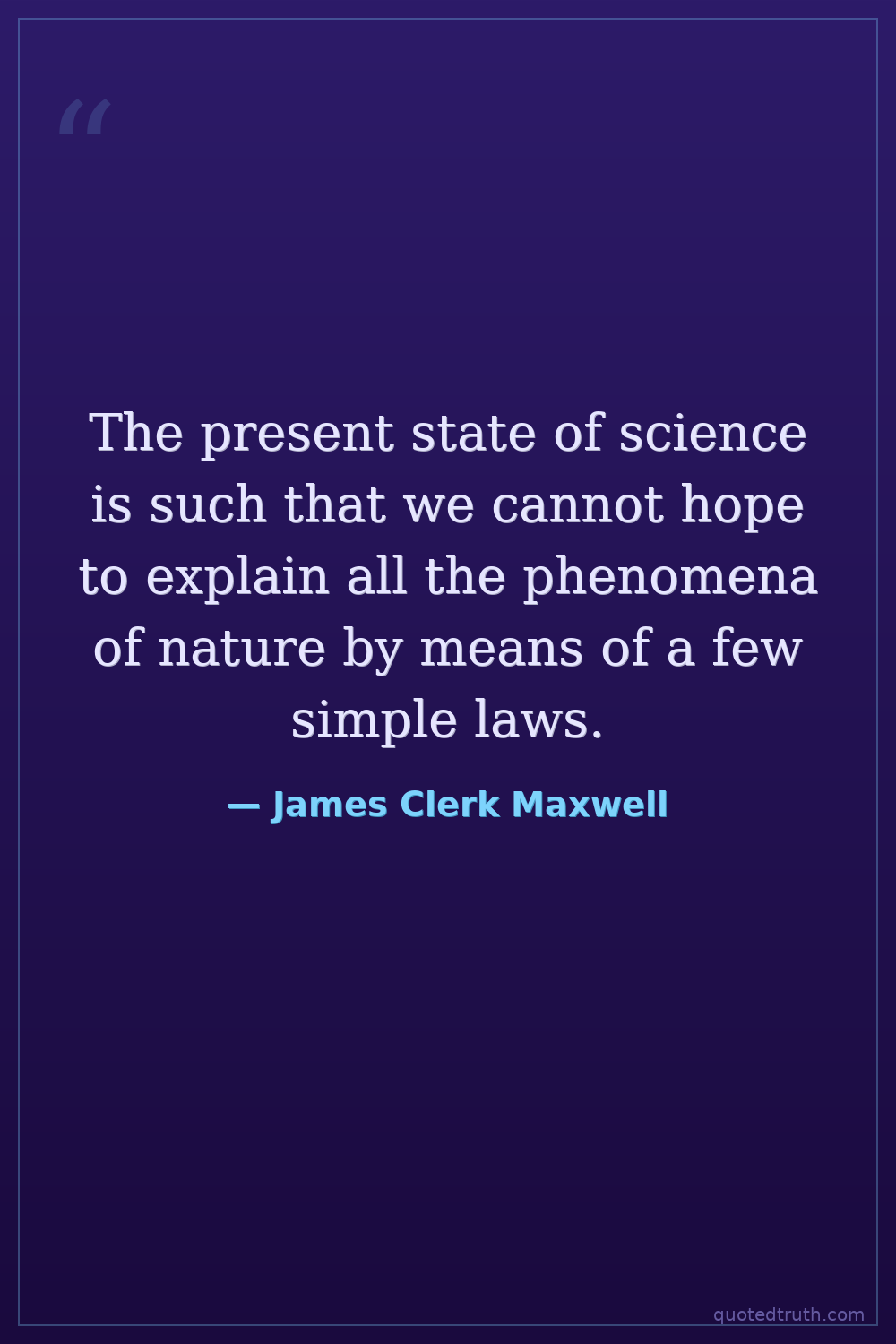 The present state of science is such that we cannot hope to explain all the phenomena of nature by means of a few simple laws.
