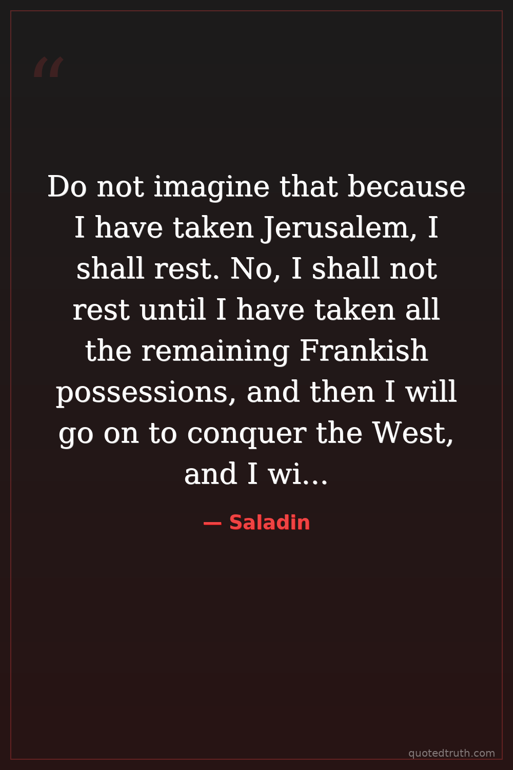 Do not imagine that because I have taken Jerusalem, I shall rest. No, I shall not rest until I have taken all the remaining Frankish possessions, and then I will go on to conquer the West, and I will drive the Franks from all lands.