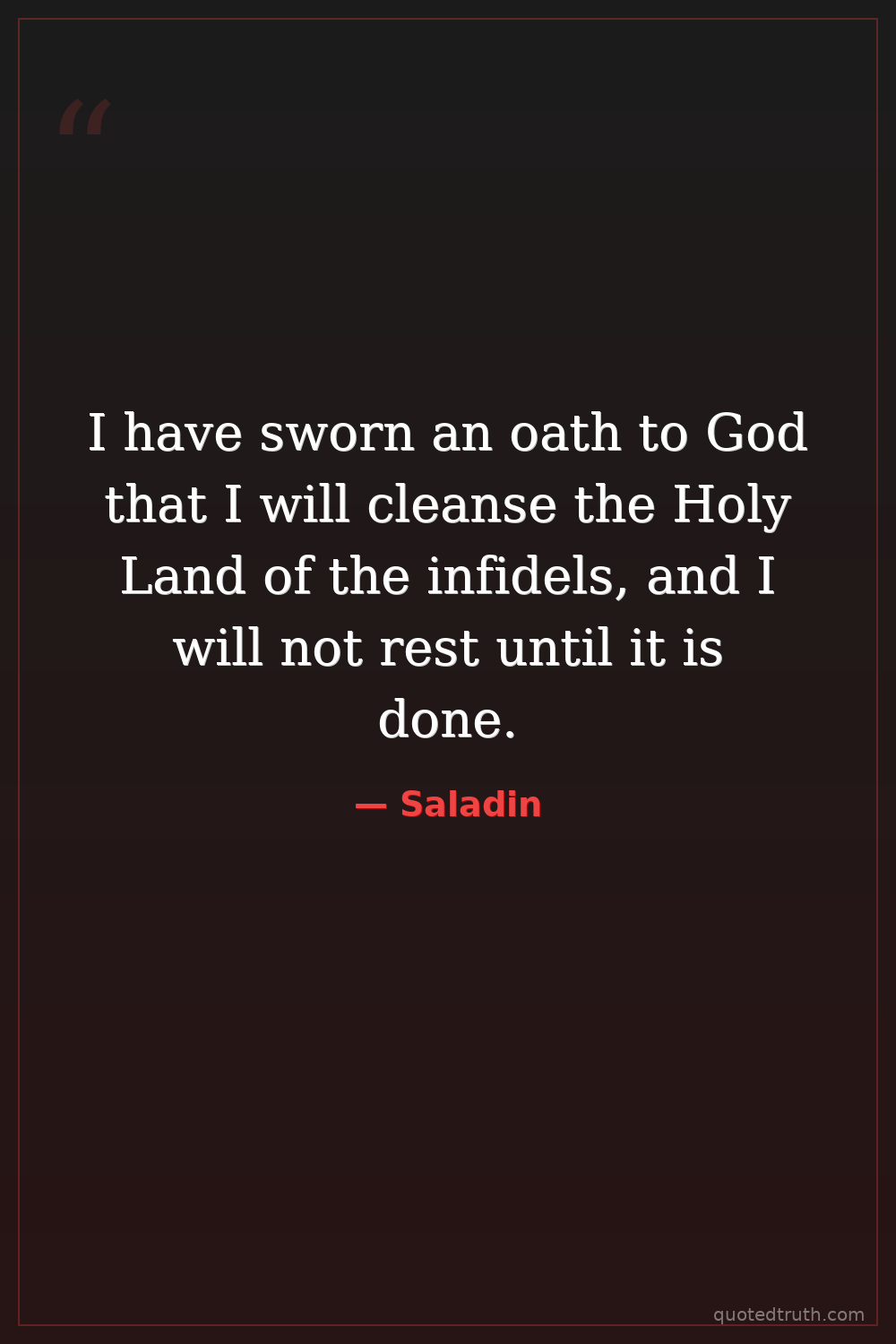 I have sworn an oath to God that I will cleanse the Holy Land of the infidels, and I will not rest until it is done.