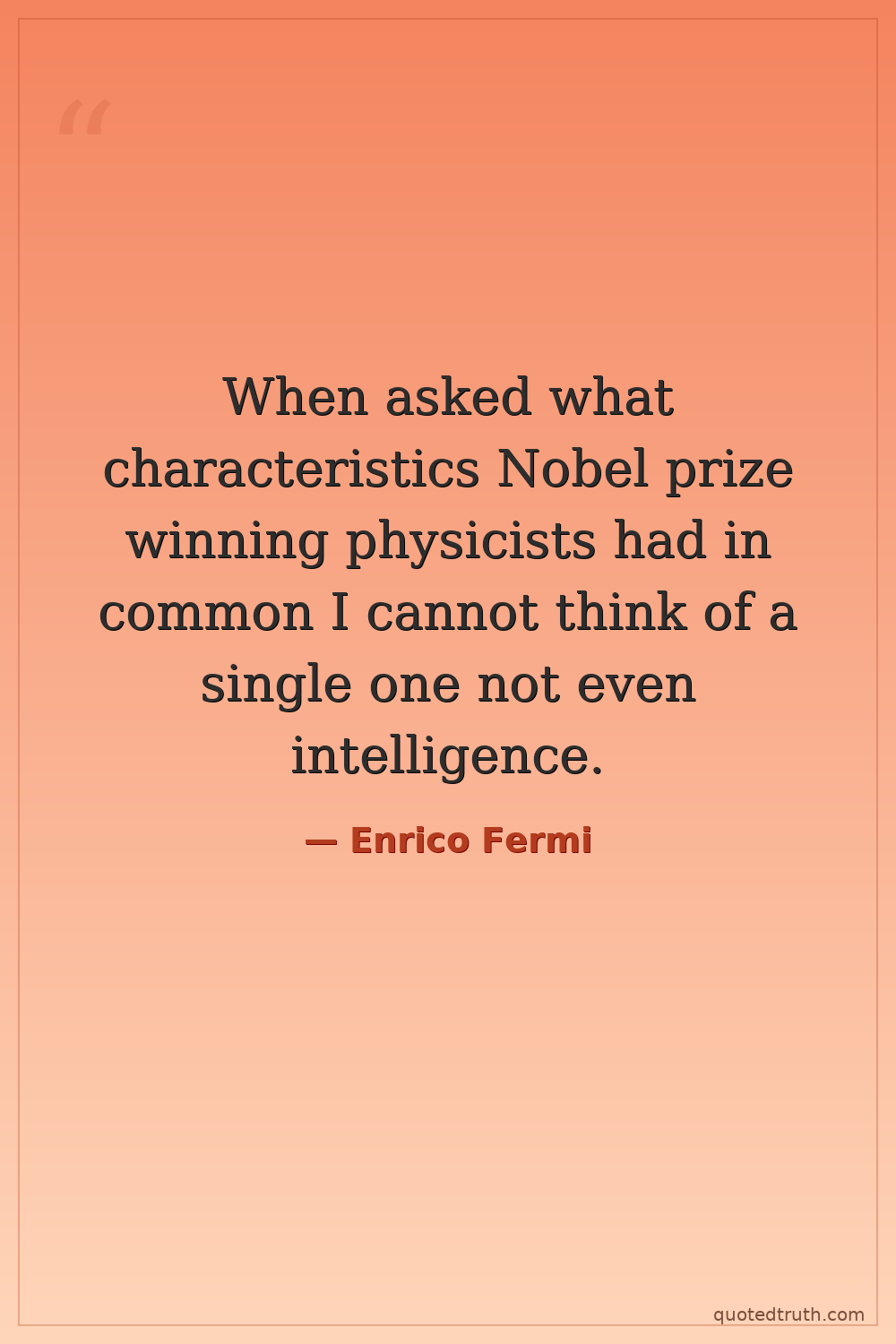When asked what characteristics Nobel prize winning physicists had in common I cannot think of a single one not even intelligence.