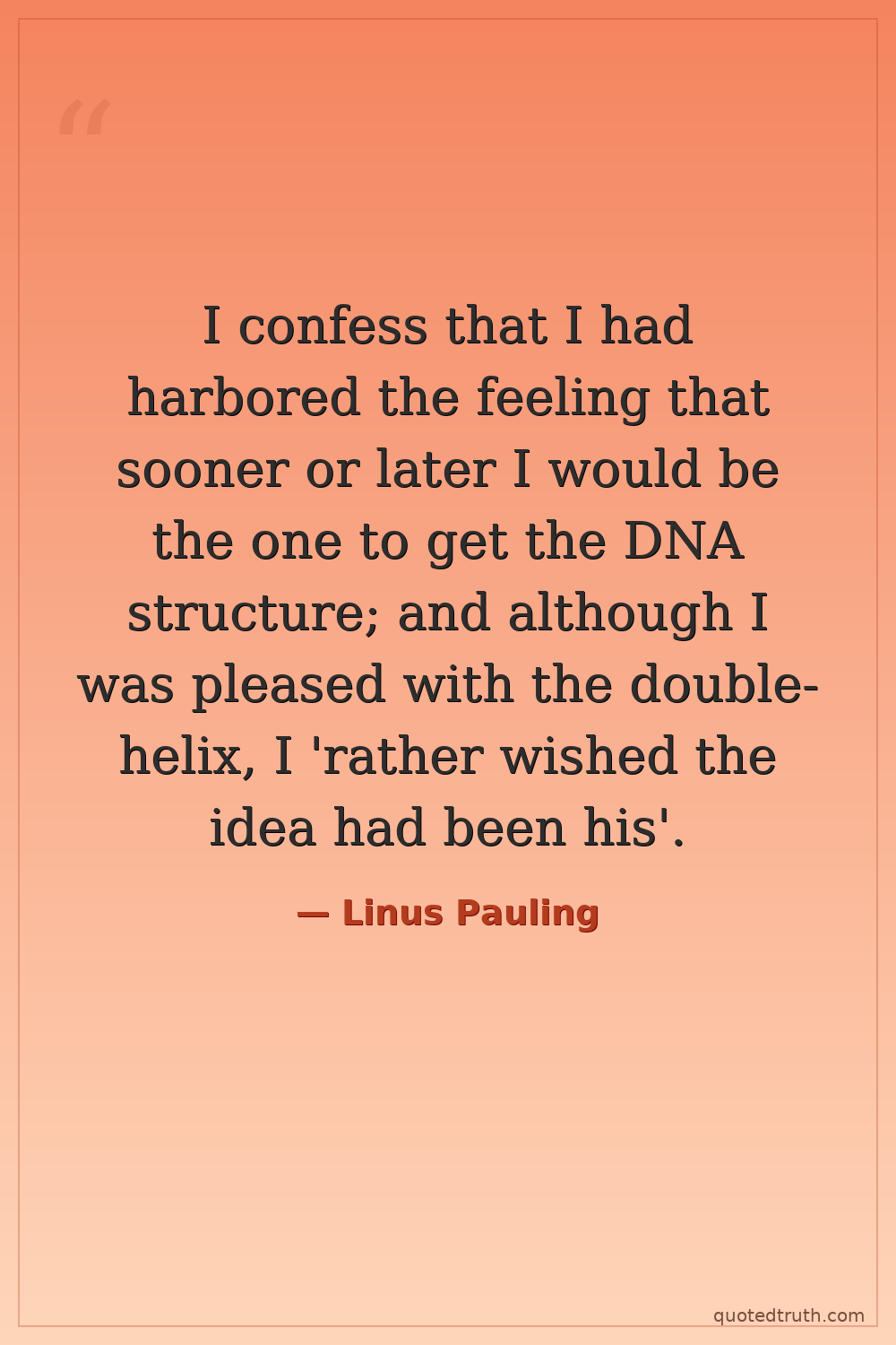 I confess that I had harbored the feeling that sooner or later I would be the one to get the DNA structure; and although I was pleased with the double-helix, I 'rather wished the idea had been his'.