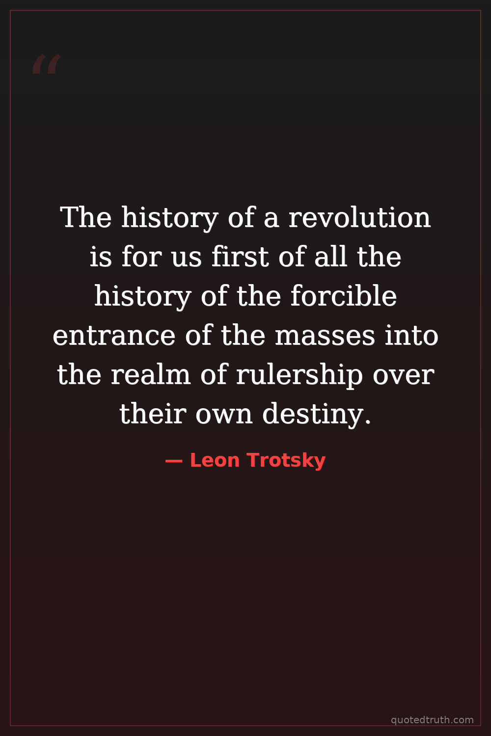 The history of a revolution is for us first of all the history of the forcible entrance of the masses into the realm of rulership over their own destiny.