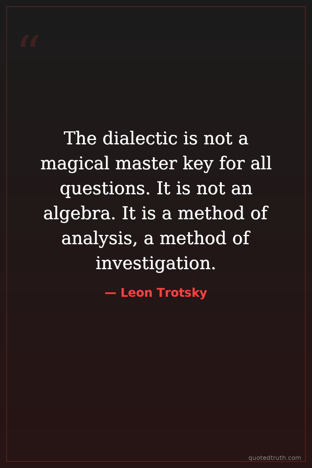 The dialectic is not a magical master key for all questions. It is not an algebra. It is a method of analysis, a method of investigation.