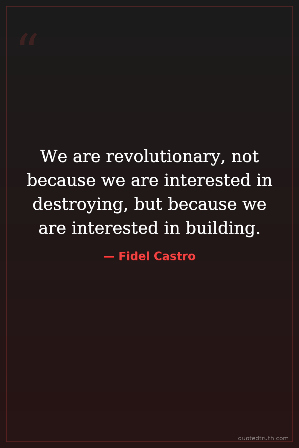 We are revolutionary, not because we are interested in destroying, but because we are interested in building.