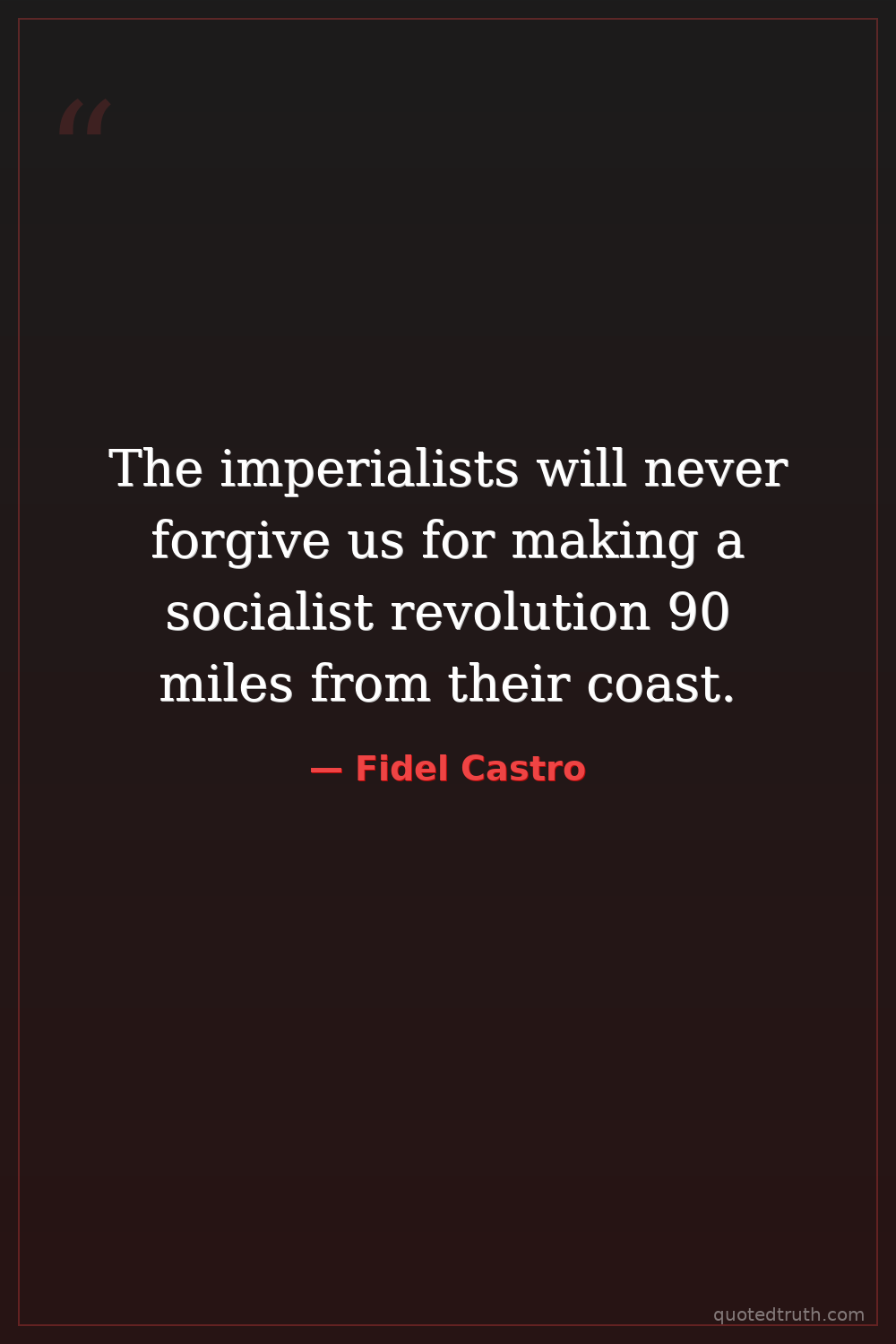 The imperialists will never forgive us for making a socialist revolution 90 miles from their coast.