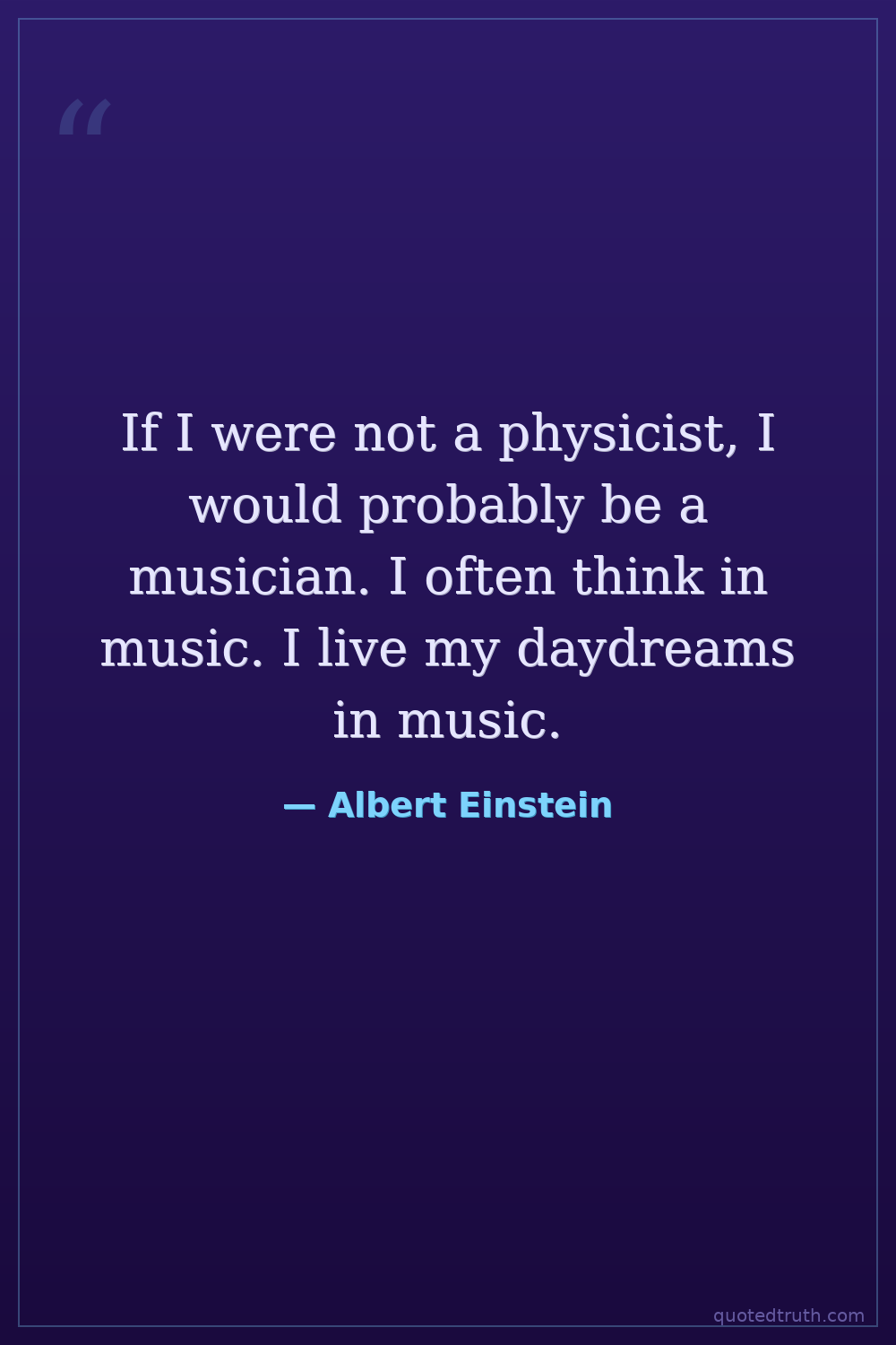 If I were not a physicist, I would probably be a musician. I often think in music. I live my daydreams in music.