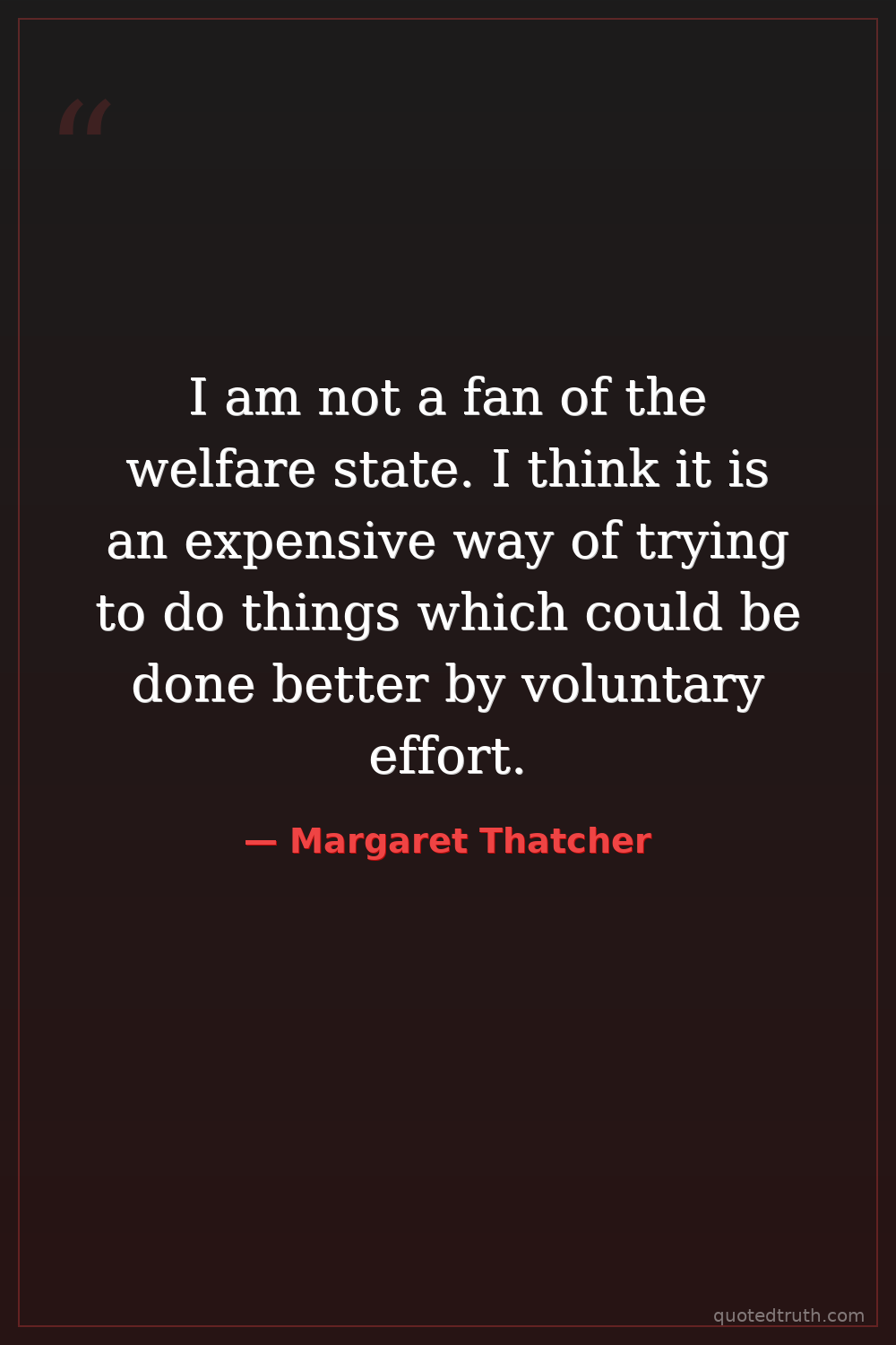 I am not a fan of the welfare state. I think it is an expensive way of trying to do things which could be done better by voluntary effort.