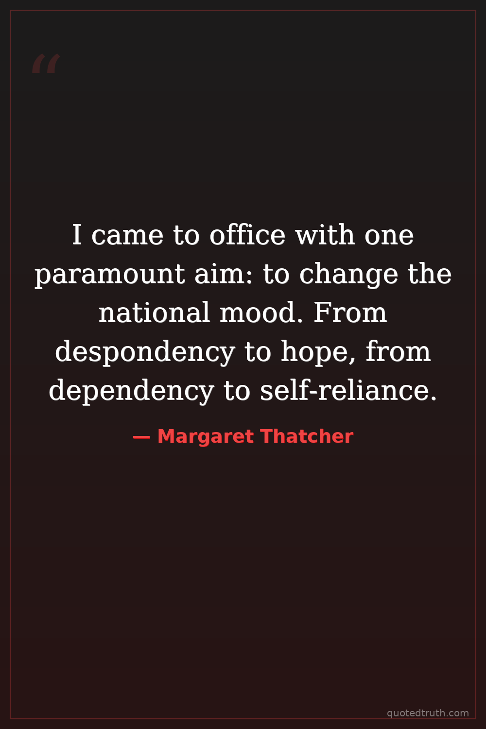 I came to office with one paramount aim: to change the national mood. From despondency to hope, from dependency to self-reliance.