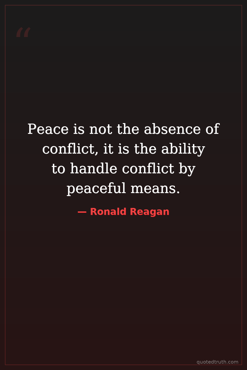 Peace is not the absence of conflict, it is the ability to handle conflict by peaceful means.