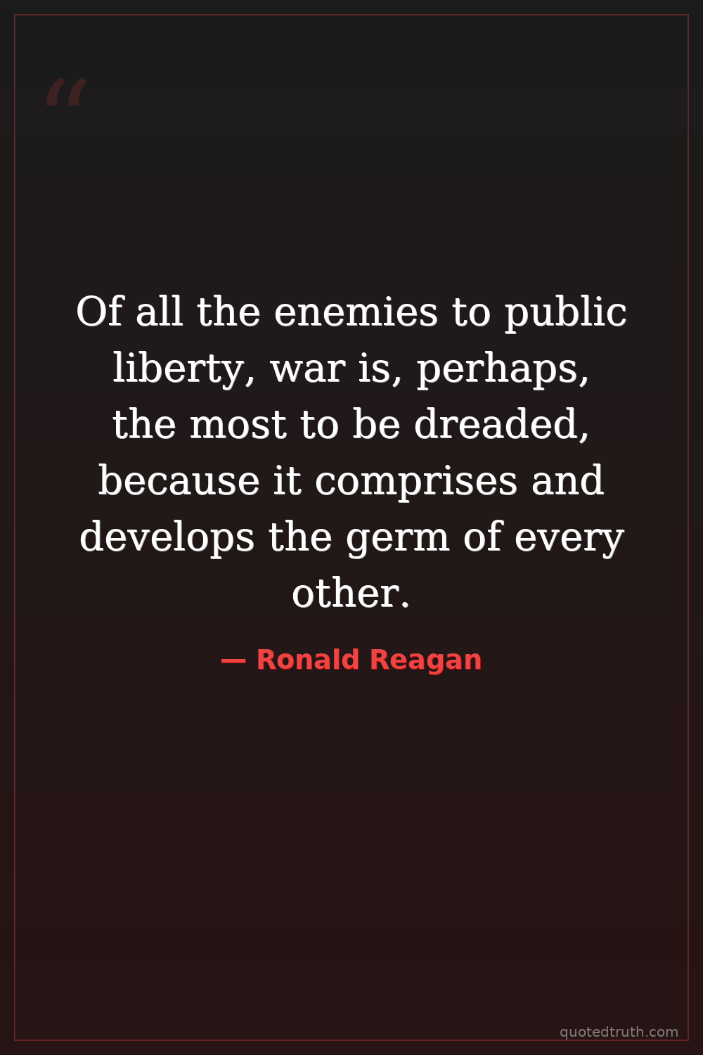Of all the enemies to public liberty, war is, perhaps, the most to be dreaded, because it comprises and develops the germ of every other.