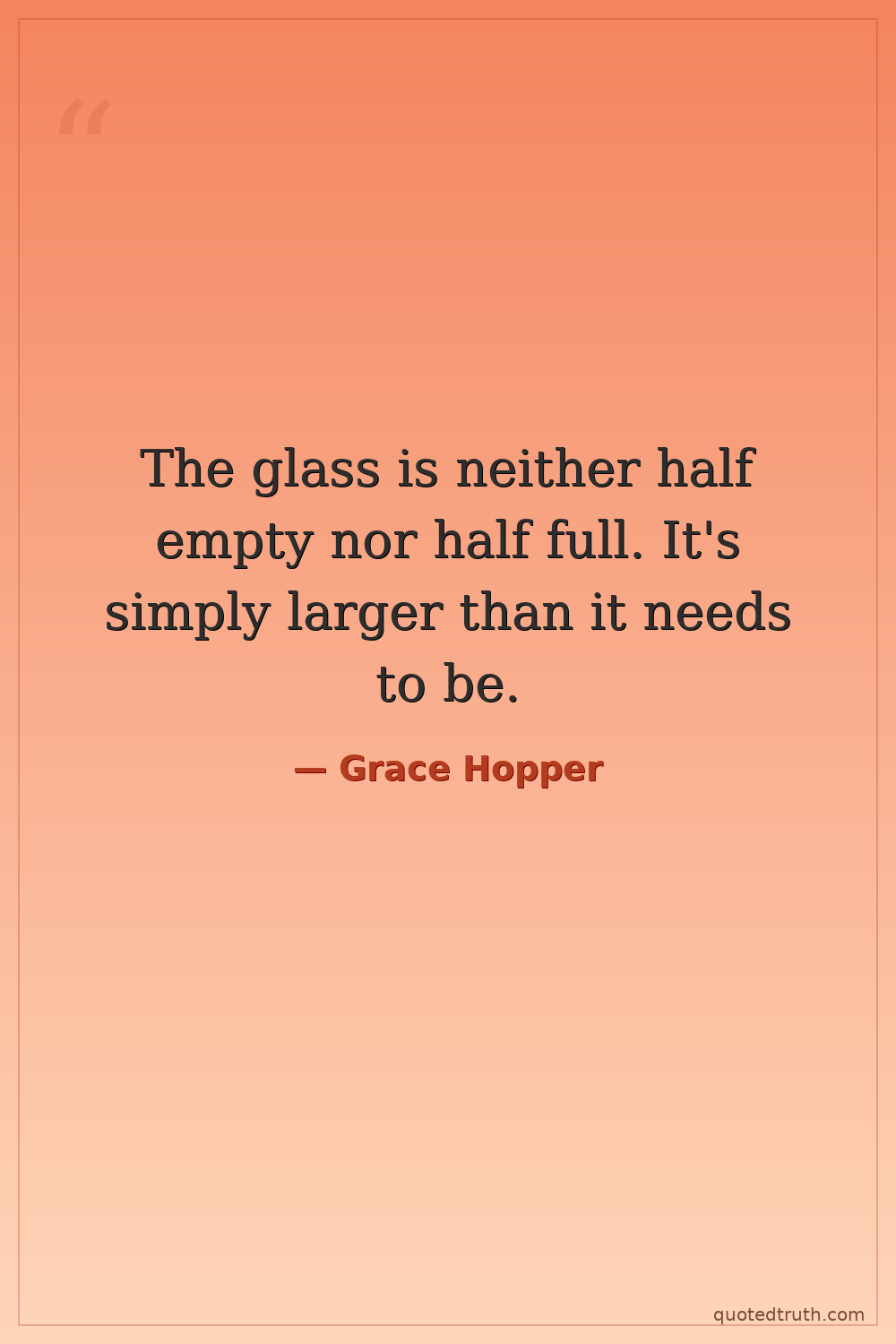 The glass is neither half empty nor half full. It's simply larger than it needs to be.