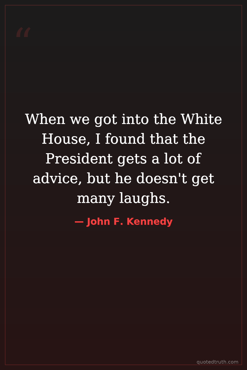 When we got into the White House, I found that the President gets a lot of advice, but he doesn't get many laughs.