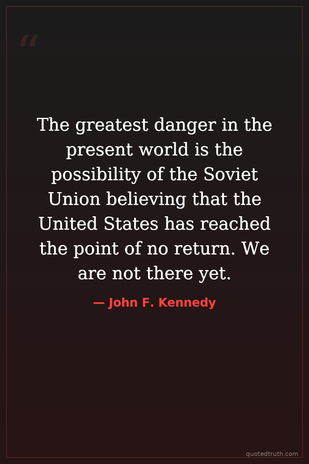 The greatest danger in the present world is the possibility of the Soviet Union believing that the United States has reached the point of no return. We are not there yet.