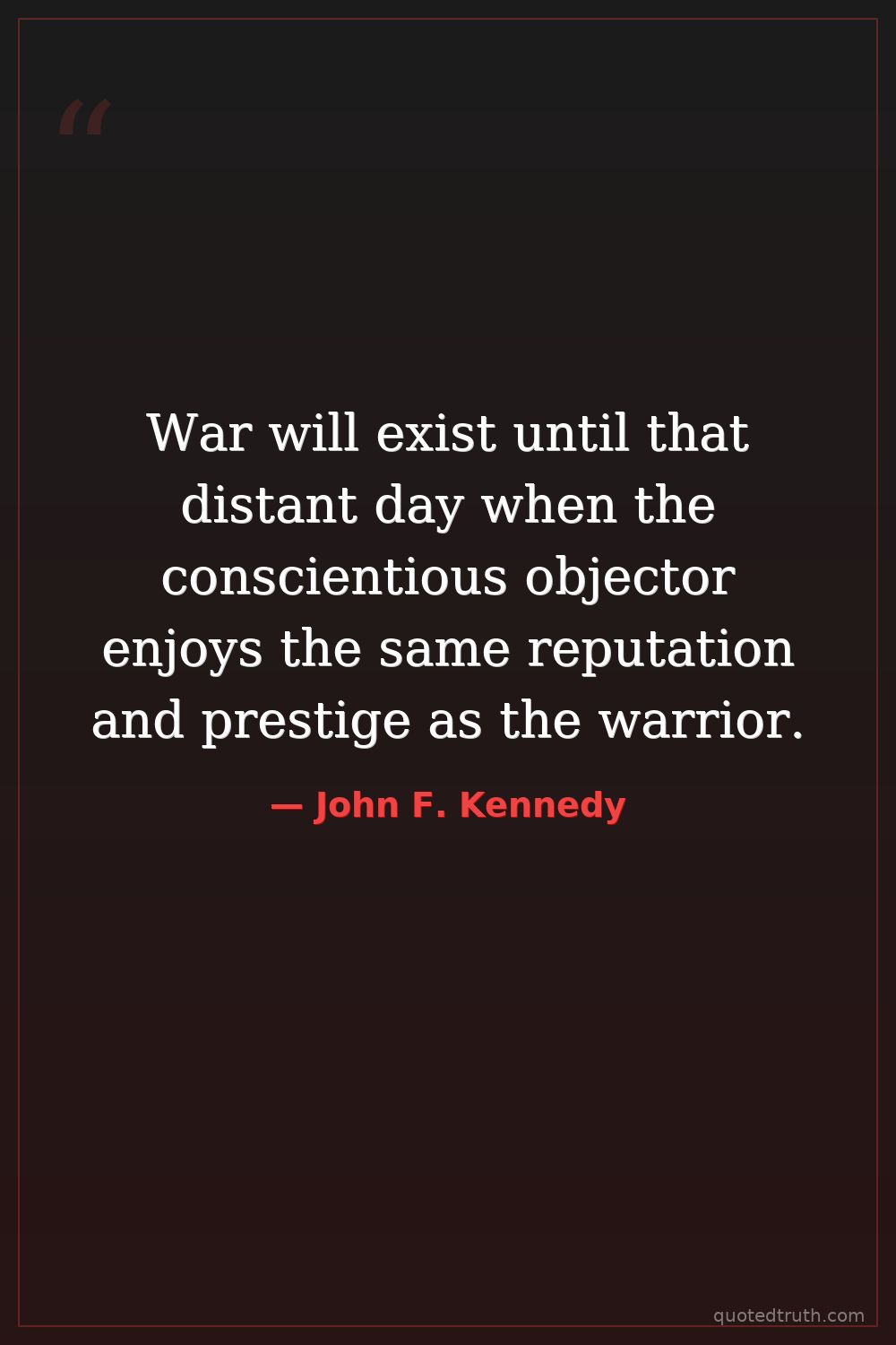 War will exist until that distant day when the conscientious objector enjoys the same reputation and prestige as the warrior.