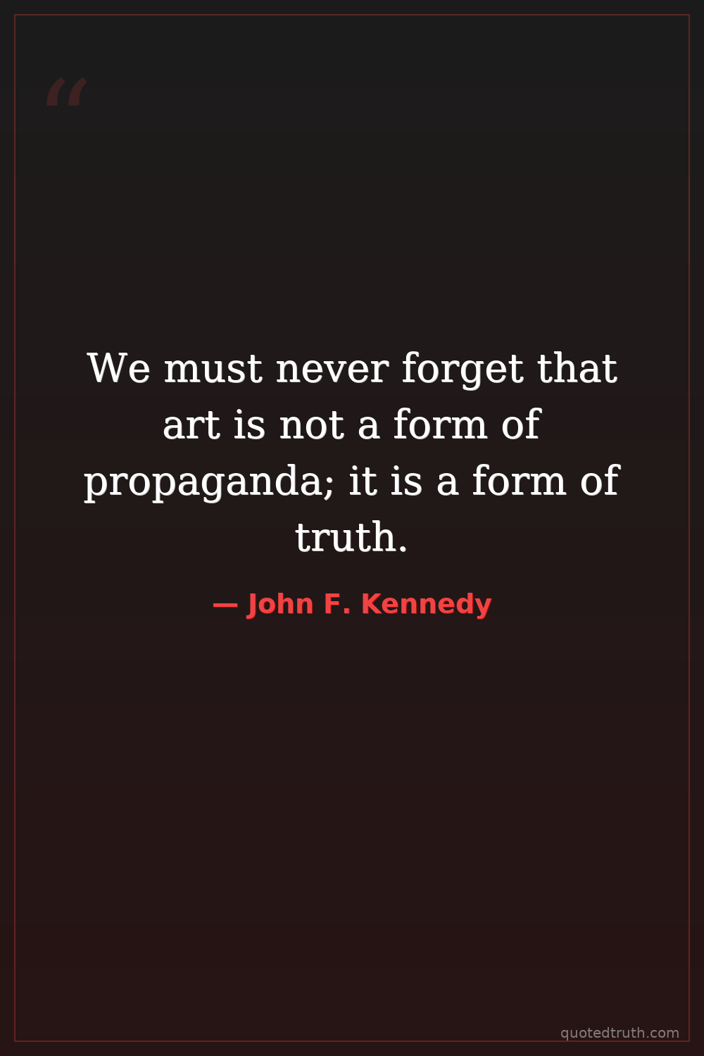We must never forget that art is not a form of propaganda; it is a form of truth.
