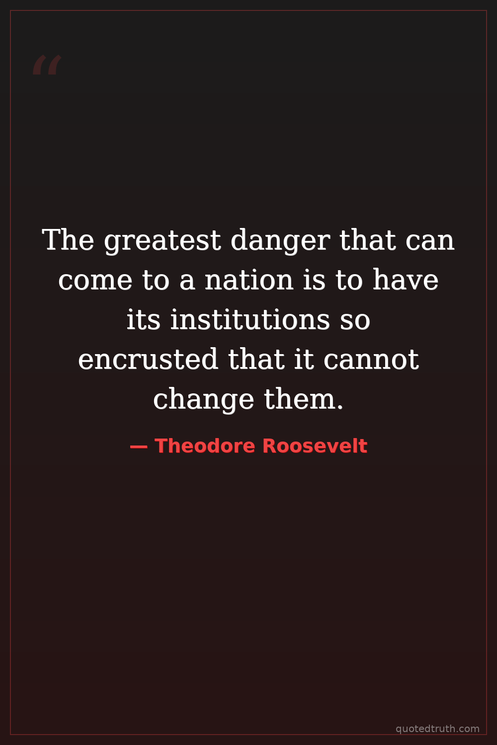 The greatest danger that can come to a nation is to have its institutions so encrusted that it cannot change them.