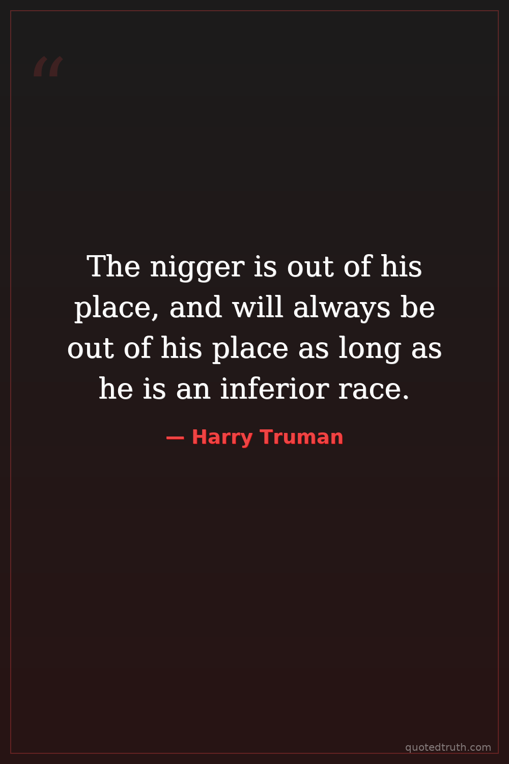 The nigger is out of his place, and will always be out of his place as long as he is an inferior race.