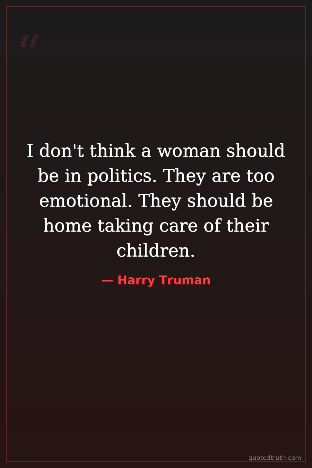 I don't think a woman should be in politics. They are too emotional. They should be home taking care of their children.