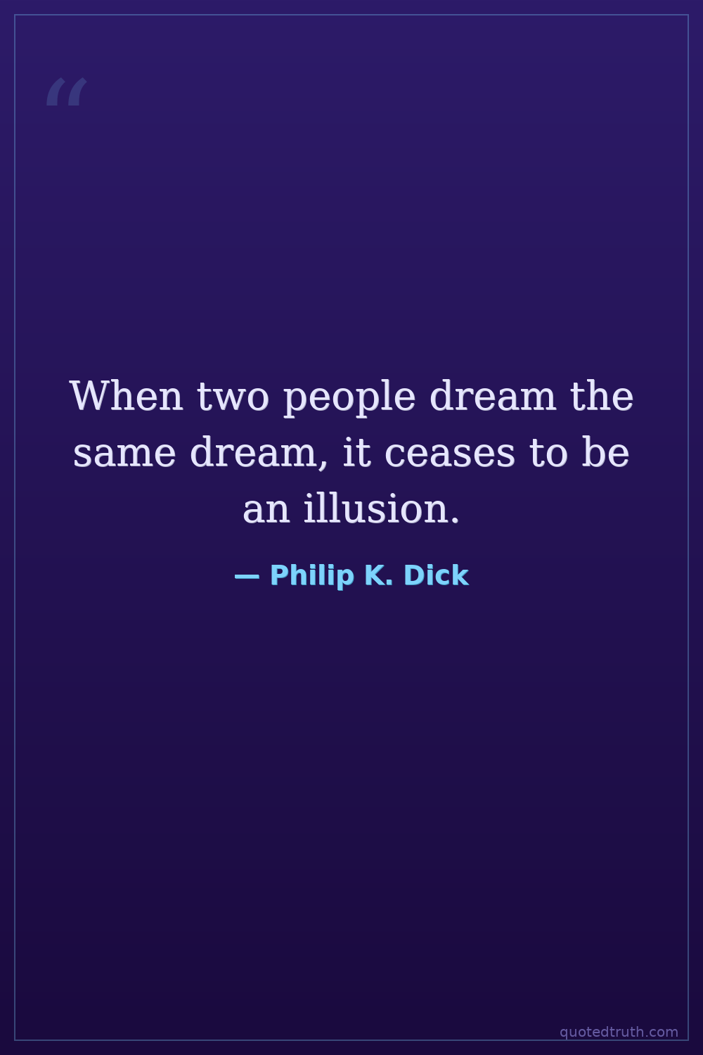 When two people dream the same dream, it ceases to be an illusion.
