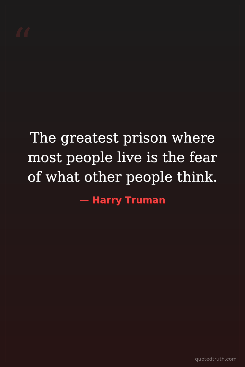 The greatest prison where most people live is the fear of what other people think.