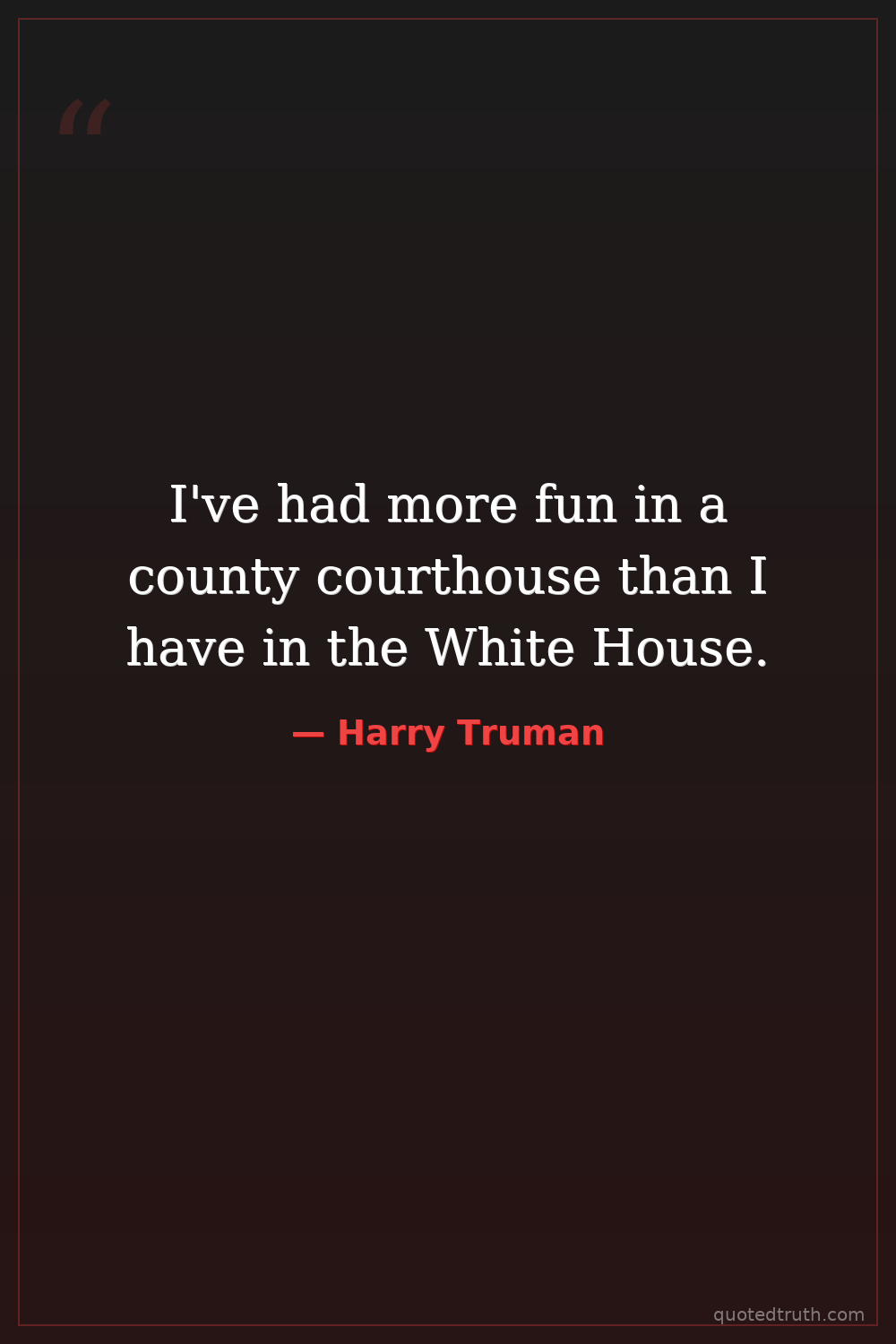 I've had more fun in a county courthouse than I have in the White House.