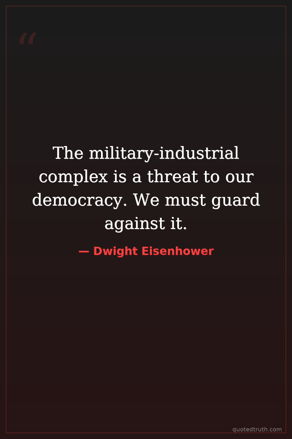 The military-industrial complex is a threat to our democracy. We must guard against it.