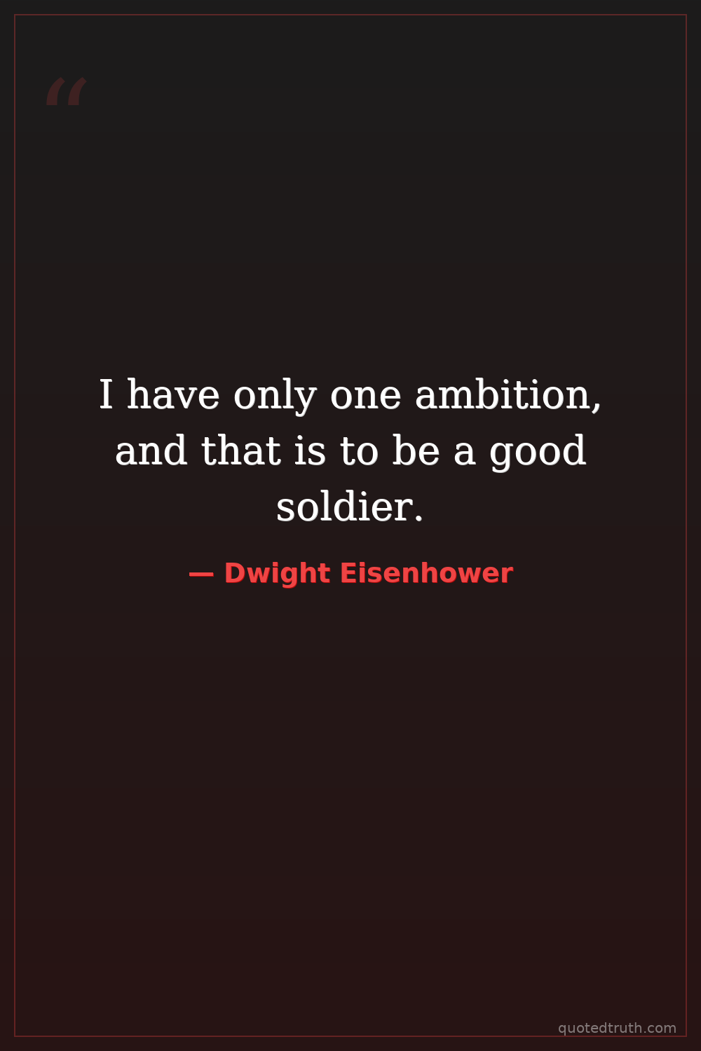 I have only one ambition, and that is to be a good soldier.