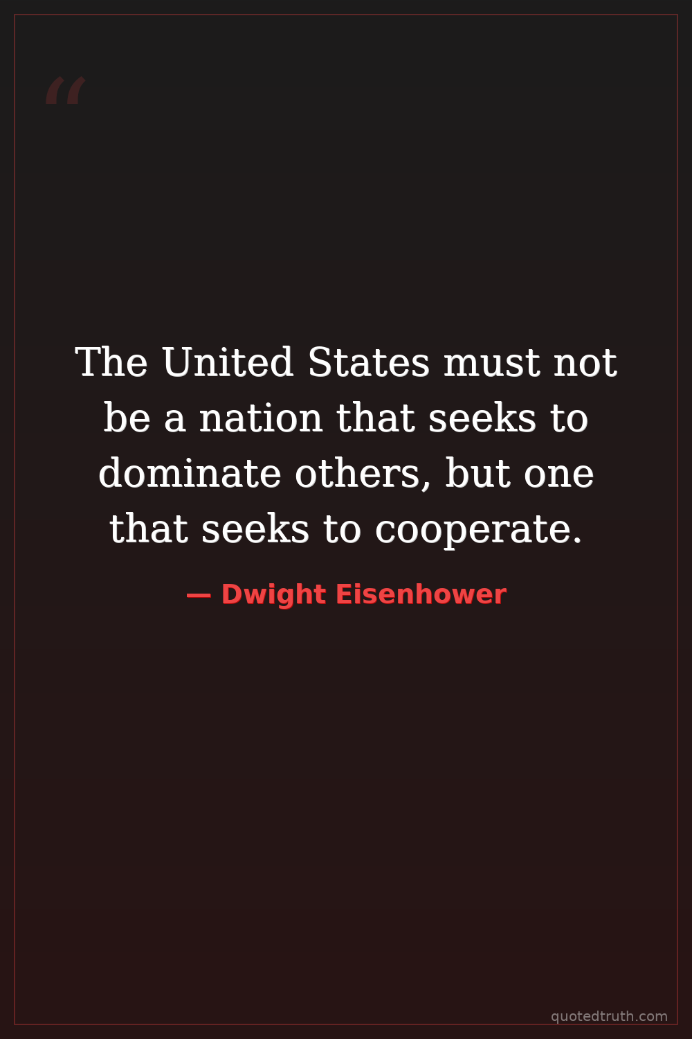 The United States must not be a nation that seeks to dominate others, but one that seeks to cooperate.