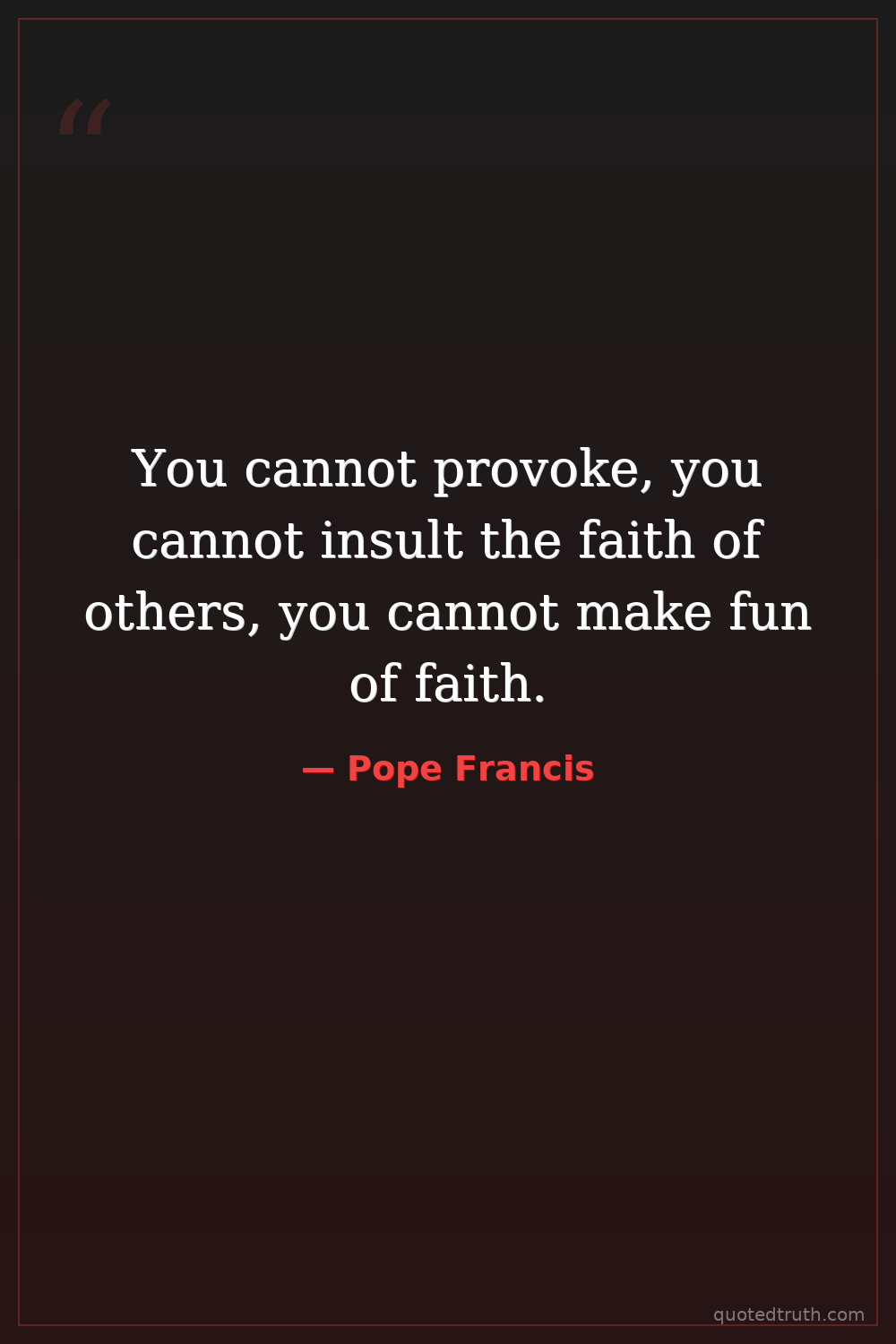 You cannot provoke, you cannot insult the faith of others, you cannot make fun of faith.