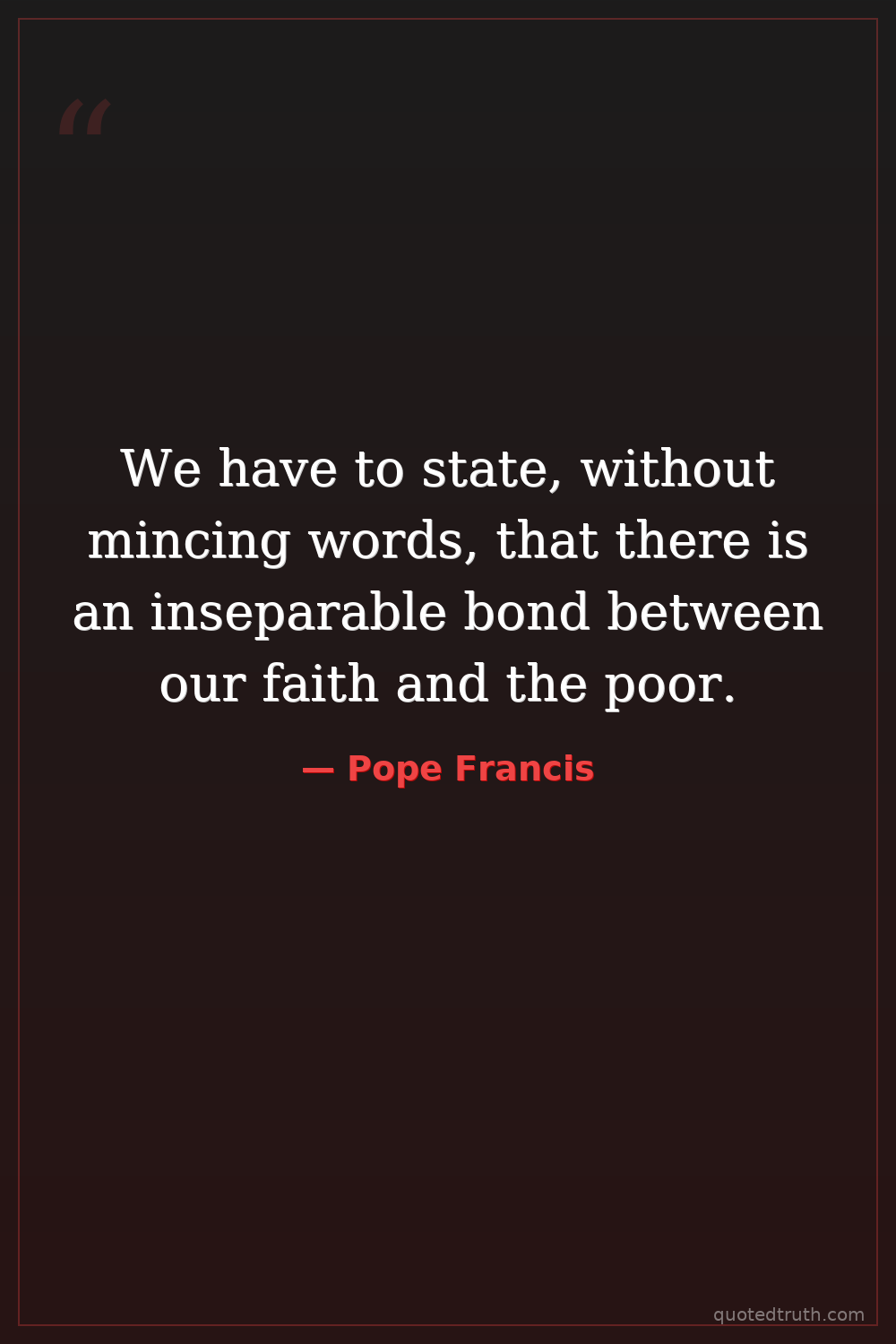 We have to state, without mincing words, that there is an inseparable bond between our faith and the poor.