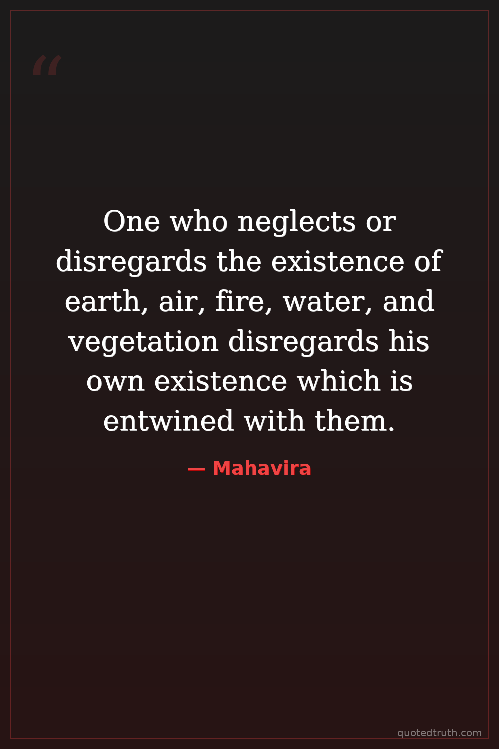 One who neglects or disregards the existence of earth, air, fire, water, and vegetation disregards his own existence which is entwined with them.