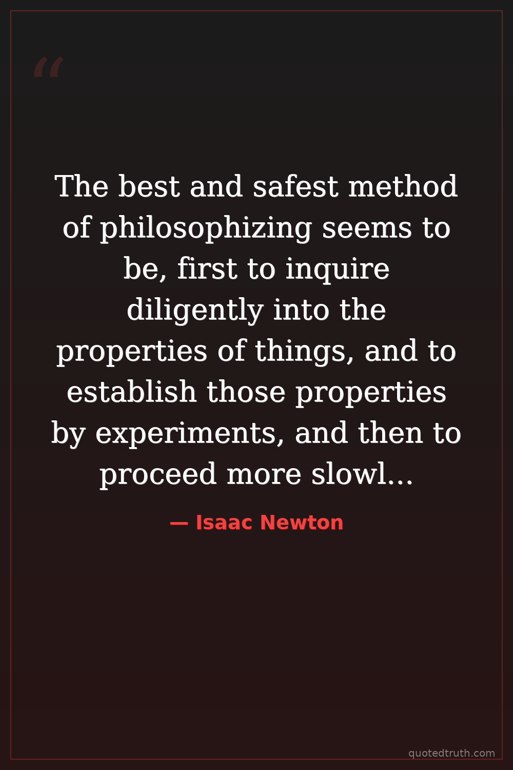 The best and safest method of philosophizing seems to be, first to inquire diligently into the properties of things, and to establish those properties by experiments, and then to proceed more slowly to hypotheses for the explanation of them.