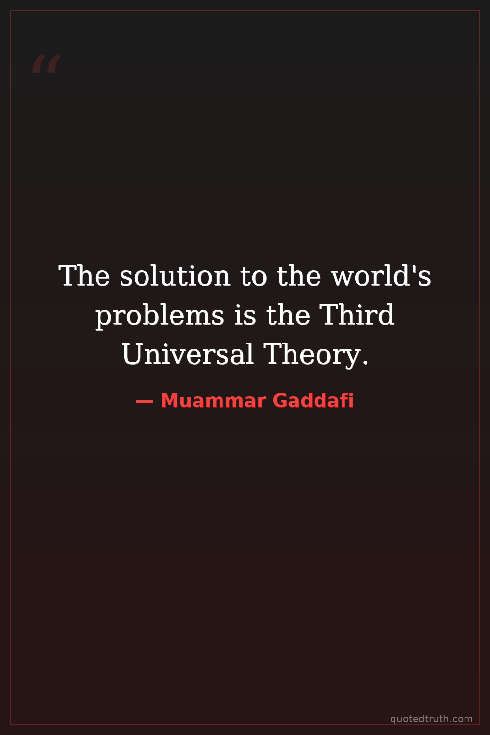 The solution to the world's problems is the Third Universal Theory.