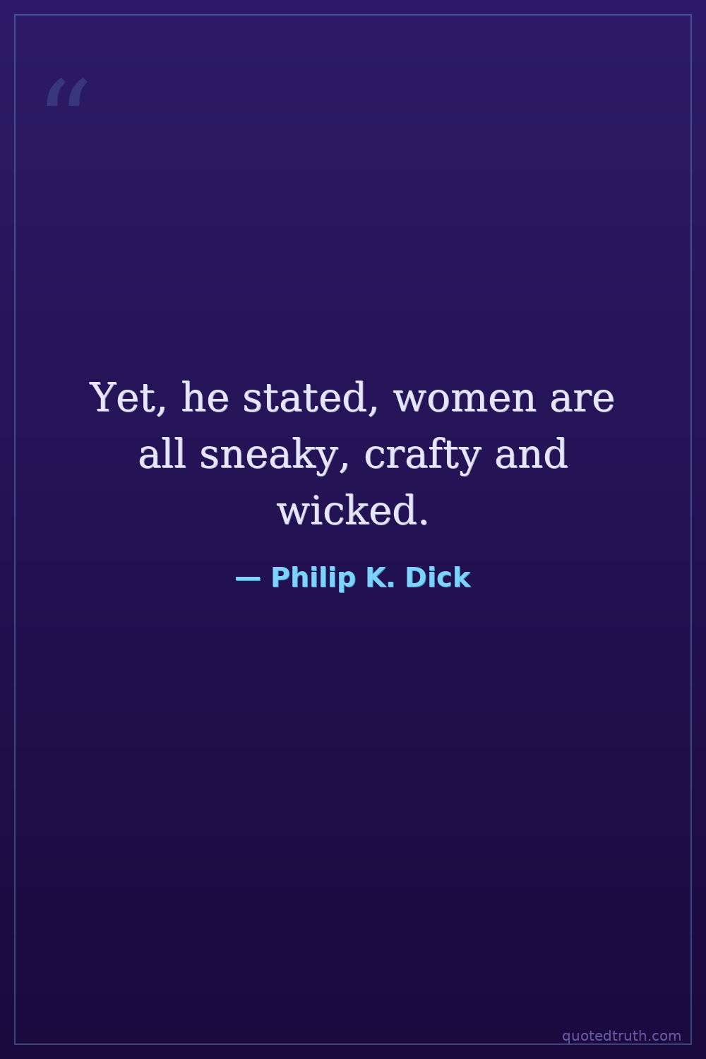 Yet, he stated, women are all sneaky, crafty and wicked.