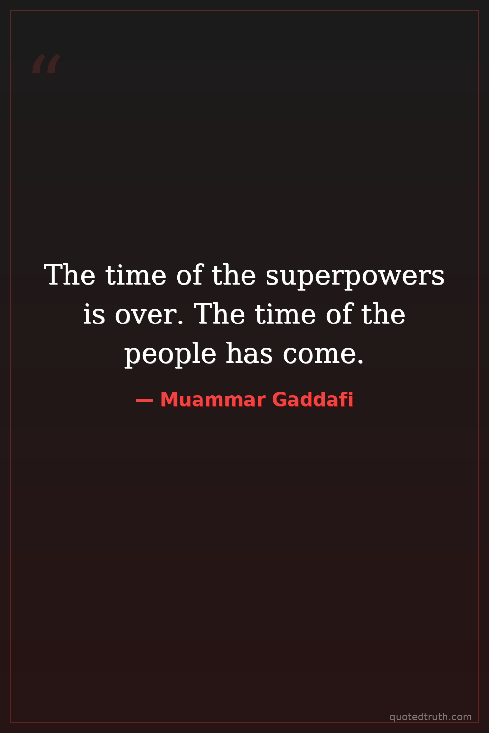 The time of the superpowers is over. The time of the people has come.