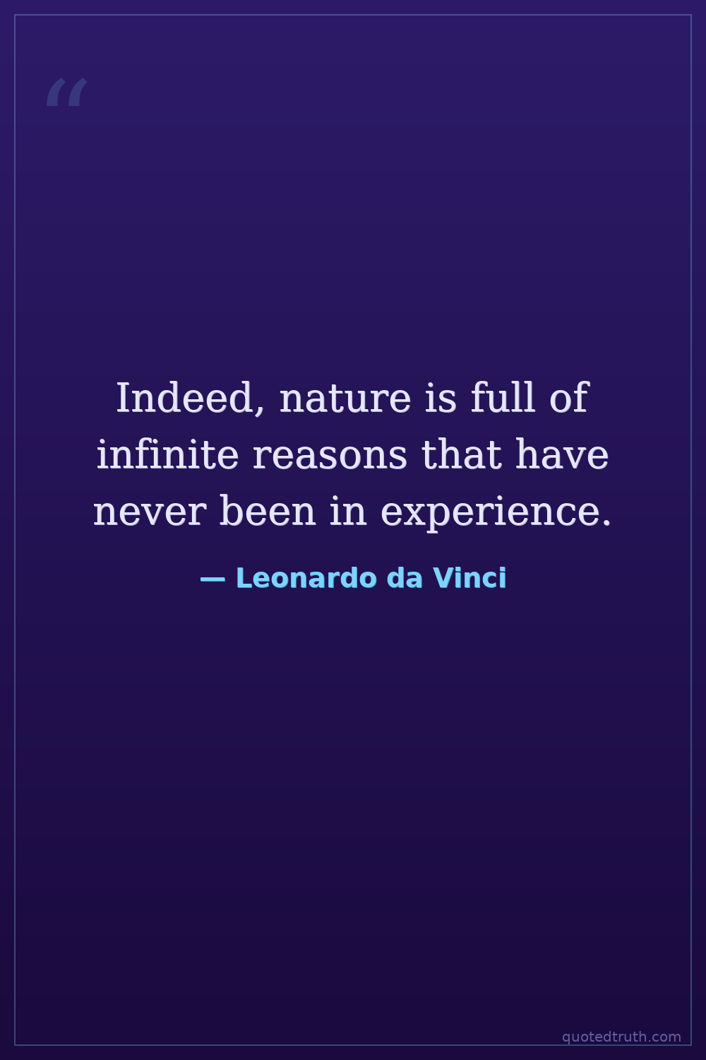 Indeed, nature is full of infinite reasons that have never been in experience.