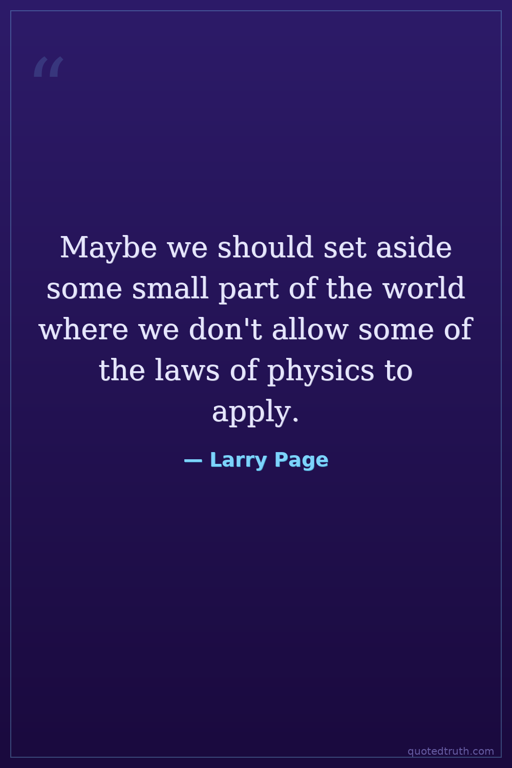 Maybe we should set aside some small part of the world where we don't allow some of the laws of physics to apply.