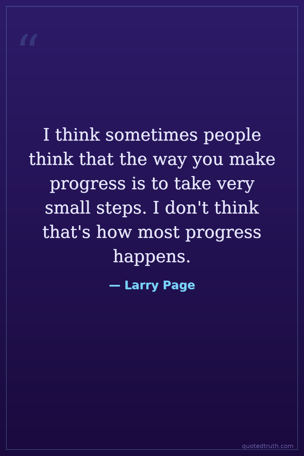 I think sometimes people think that the way you make progress is to take very small steps. I don't think that's how most progress happens.